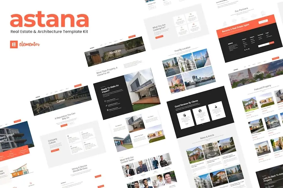 Presentamos Astana: Real Estate & Architecture Template Kit, la mejor opción para cualquiera que busque un kit de plantillas de Real Estate Elementor optimizado para la página de inicio de su startup, software o aplicación. Astana tiene 10 páginas diferentes y más elementos para el sitio web de su empresa, ¡para que pueda crear sus páginas de la manera que elija!