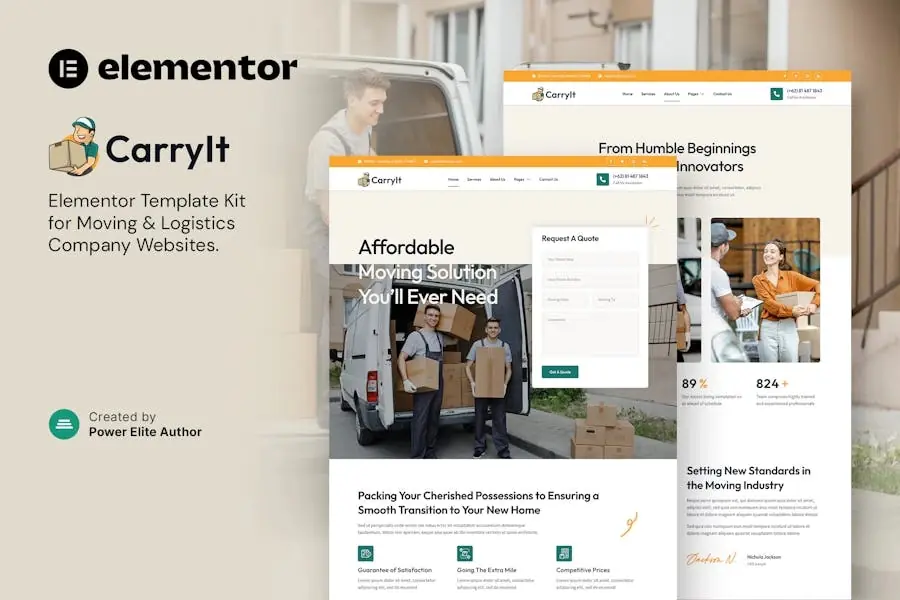 CarryIt es un Kit de Plantillas Elementor contemporáneo y pulido hecho a medida para empresas del sector de mudanzas y logística. Si eres un profesional una empresa de mudanzas, un proveedor de servicios de embalaje, una agencia de mudanzas o un empresa de logística y transporte, CarryIt ha sido diseñada meticulosamente para satisfaga sus necesidades. Con su diseño profesional, diseño responsivo y personalización intuitiva de Elementor, CarryIt te permite establecer un presencia en línea perfecta sin necesidad de conocimientos de codificación.