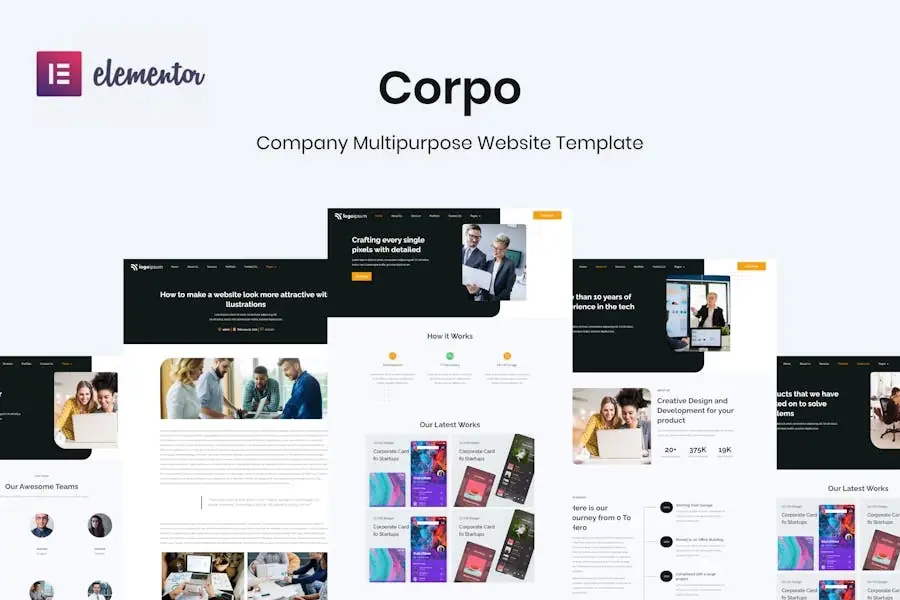 Corpo: el kit de interfaz de usuario para sitios web corporativos es una plantilla web moderna y profesional que es perfectamente adecuada para cualquier sitio web empresarial relacionado con agencias, marketing, consultoría, empresas emergentes, soluciones de TI y empresas de servicios. Es un diseño limpio, moderno y sencillo.