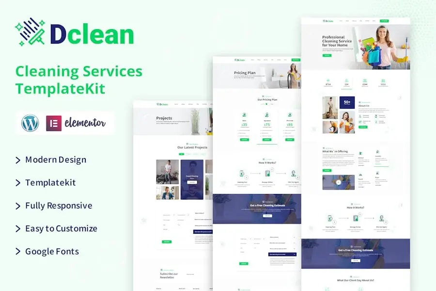 Dclean Template Kit Elementor para servicios de limpieza