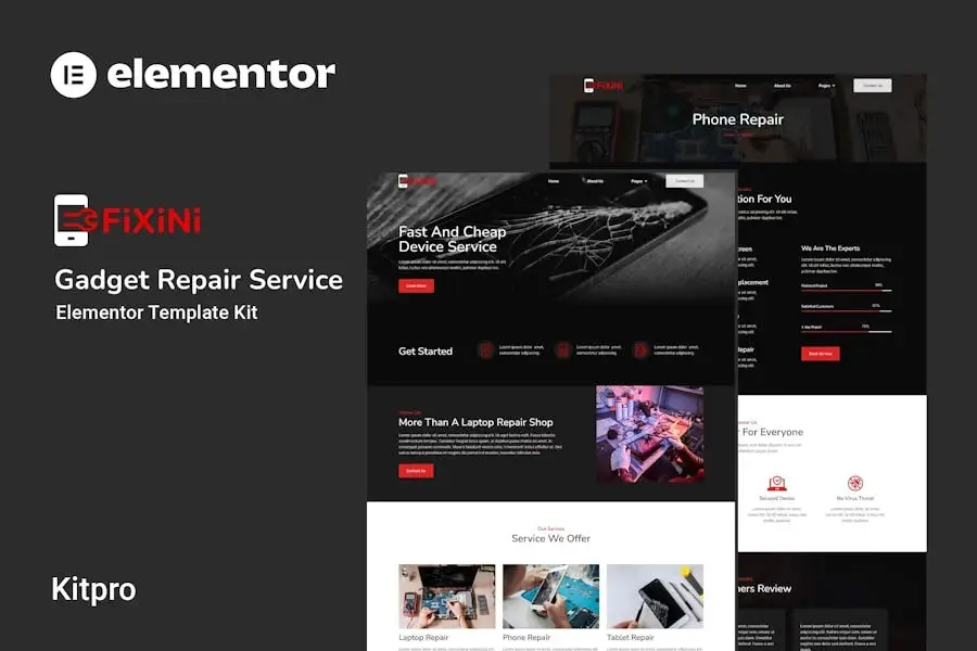 Fixini – Template Kit Elementor del servicio de reparación de gadgets