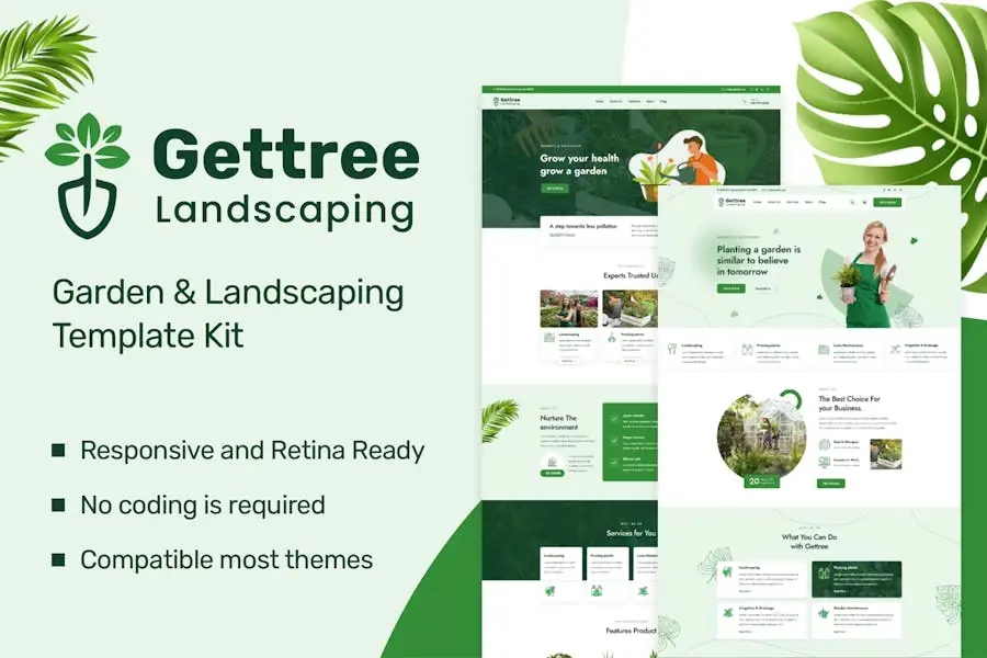 Gettree utiliza el popular Plugin de creación de páginas Elementor, esta plantilla es fácilmente personalizable, totalmente responsiva y es compatible con todos los navegadores y dispositivos modernos. Gettree es el Template Kit de Elementor para el sitio web de jardinería y sus servicios relacionados. Este Template Kit es perfecto para el sitio web de jardinería, paisajismo, decoración e incluso para el servicio de jardinería