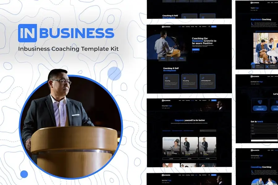 Inbusiness es un template kit de elementos poderoso y receptivo para el entrenamiento. Con la ayuda de este template kit de Elementor, puede crear un sitio web para la plataforma de coaching de consultoría.
