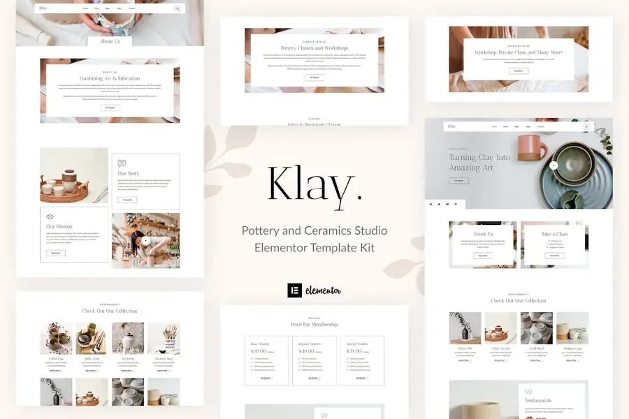 Klay: el Template Kit Elementor de Pottery and Ceramics Studio está hecho específicamente para clases de cerámica moderna, talleres de cerámica, tiendas de suministros de cerámica y eventos. También es perfecto para alfareros individuales y tiendas de artesanía. Klay tiene un diseño simple, moderno y limpio con un diseño 100% responsivo, y es muy fácil de personalizar y puede ser utilizado por cualquier persona sin tener que entender la codificación. Este template kit incluye más de 12 páginas y más de 15 impresionantes Plantillas cuidadosamente diseñadas. Puedes crear tu sitio web de Porfolio de aspecto profesional con solo un clic de distancia.