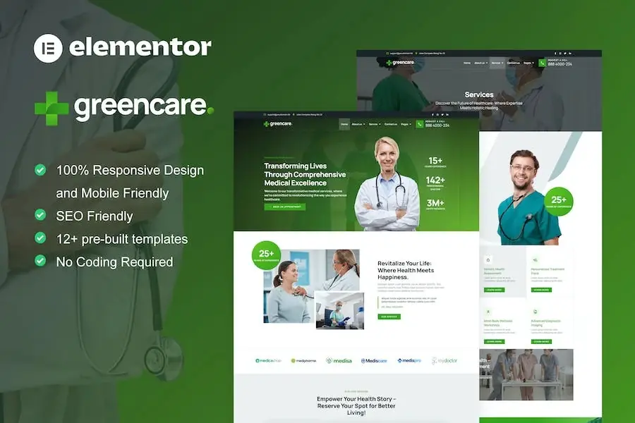 MedicaLife es un moderno Template Kit de Elementor para crear un sitio web funcional y de nivel profesional para el cuidado de la salud, clínica médica, médico, hospital, clínica de salud, farmacia y cualquier otro negocio médico o relacionado con la salud.