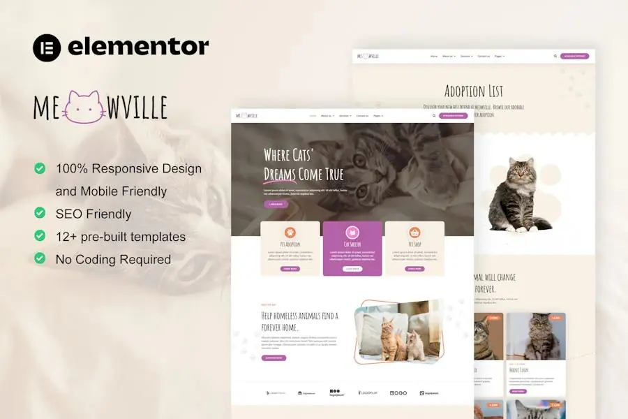 MeowVille – Template Kit Elementor para refugios de animales y criadores de gatos