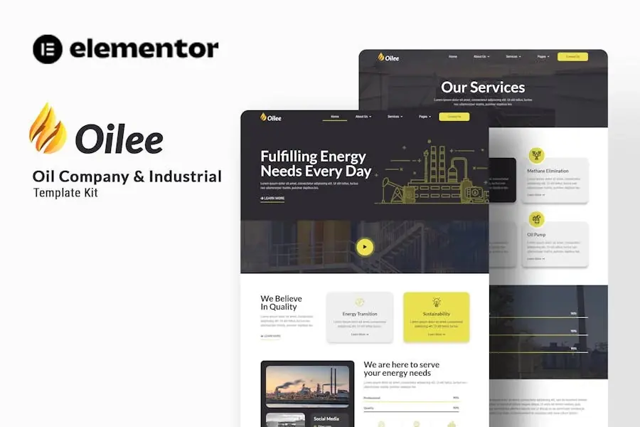 Oilee es un Kit de plantillas de Elementor para crear rápida y fácilmente sitios web para su negocio utilizando el Plugin Elementor Page Builder para WordPress. Este no es un tema de wordpress. Los Template Kits contienen contenido de página para el creador de páginas Elementor. Este kit se ha optimizado para su uso con el tema gratuito Hello Elementor, pero se puede utilizar con la mayoría de los temas compatibles con Elementor