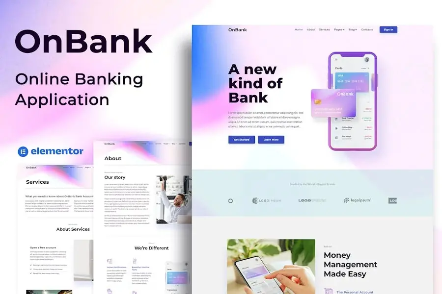 OnBank – Banca en línea y transferencias de dinero – Elementor Kit