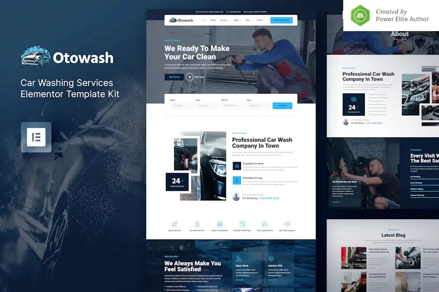 Otowash Kit de plantillas Elementor para servicios de lavado y limpieza de autos