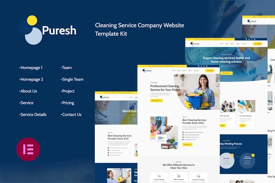Puresh Kit de plantillas Elementor para empresa de servicios de limpieza