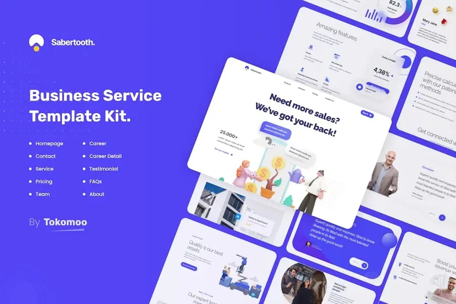 Sabertooth es un kit de plantillas Elementor para empresas emergentes de tecnología moderno y limpio para crear un sitio web profesional y totalmente funcional basado en WordPress para una empresa emergente, SaaS, una casa de software, un profesional de TI, un desarrollador de aplicaciones móviles y cualquier otra variedad de negocios.