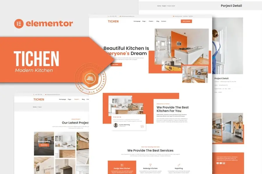 Tichen – Template Kit Elementor de cocina moderno
