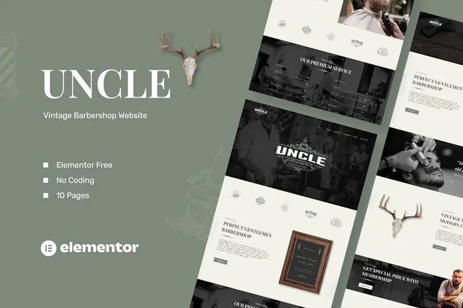 Uncle is an Elementor Template Kit for quickly and easily creating websites for your salon or styling business using the Elementor Page Builder plugin for WordPress. This is not a WordPress theme. Template Kits contain page content for Elementor page builder. This kit has been optimized for use with the free Hello Elementor theme but may be used with most themes that support Elementor.